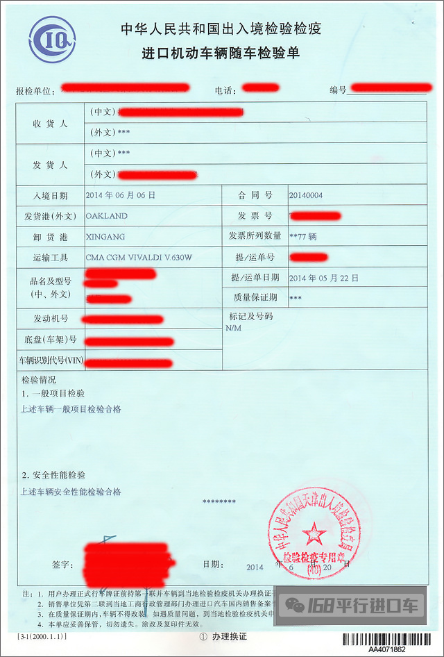 溫馨提示:在上(shàng)牌過程中,複印平行(xíng)進口車(chē)商檢<•↕時(shí)候一(yī)定要(yào)注意把右下(xià)角的(de)編碼複÷ε印齊全,開(kāi)發票(piào)需要(yào)用(yòn≤©∑$g)。一(yī)般車(chē)主自(zì)行(xíng)上(shàng)戶時Ω♦™(shí)很(hěn)容易遺漏這(zhè)✘✘× 塊。